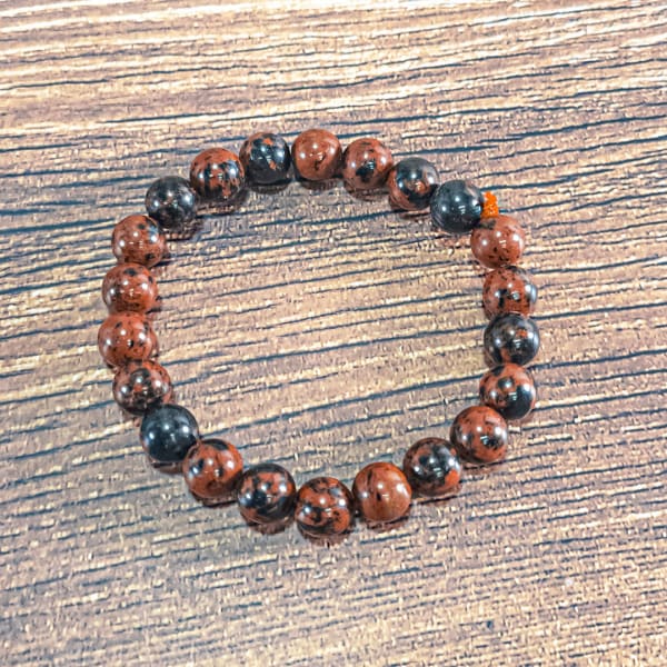 * This beautiful round bead bracelet features Mahogany Obsidian stone.